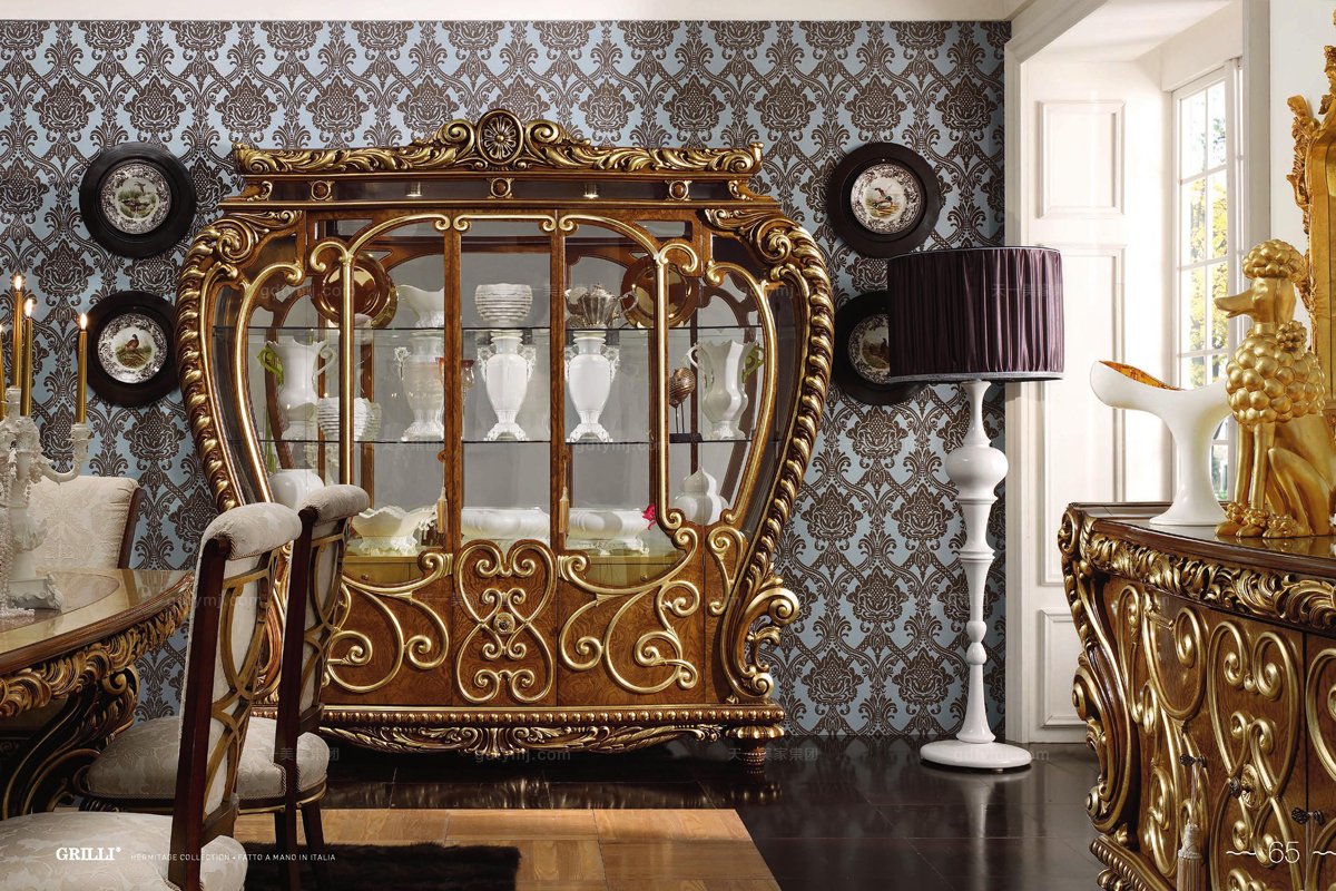 Grilli奢華新古典雕花餐廳系列酒柜