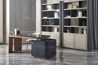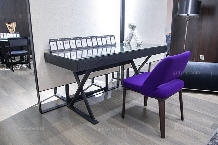 意大利輕奢極簡家具高端實木煙熏黑橡色書桌椅