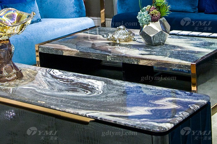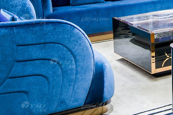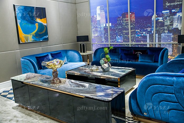 高端奢華家具品牌別墅輕奢后現代家具客廳藍色優質絨布藝沙發組合