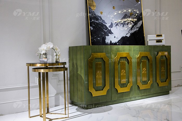高端大氣別墅會所家具輕奢現代翡翠色實木邊柜