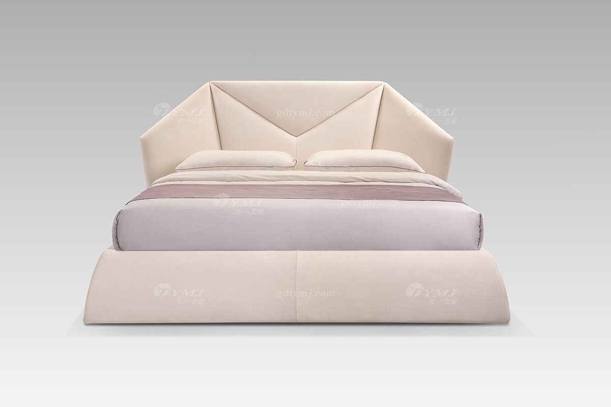 現代輕奢時尚高端米色真皮大床