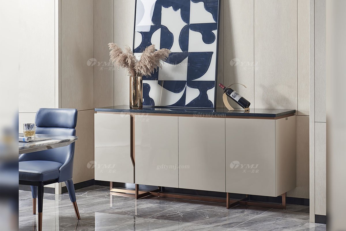 高端會所別墅家具品牌后現代輕奢風格餐廳時尚卡其色餐邊柜