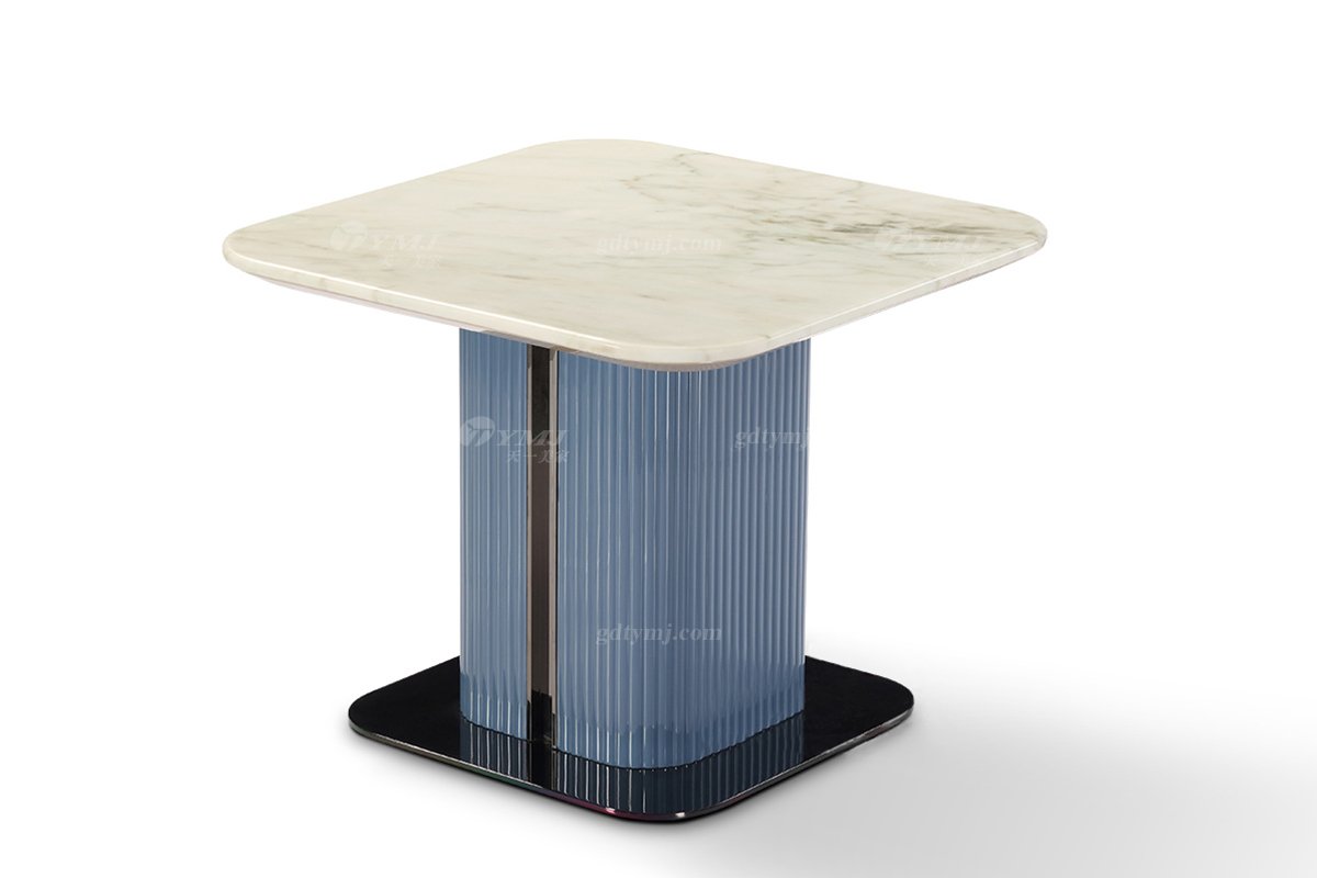 輕奢后現代風格家具高端會所別墅品牌家具時尚客廳魚肚白石面灰藍色角幾