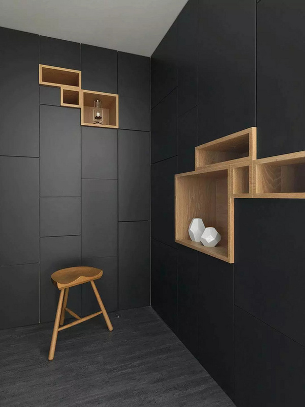 黑色是一個很強大的色彩,是幾乎所有顏色的好搭檔,尤其和木色搭,木色的柔和、溫暖可以中和黑色的莊重、冷峻,這兩種顏色配合能搭出高貴、深邃而又自然的感覺。